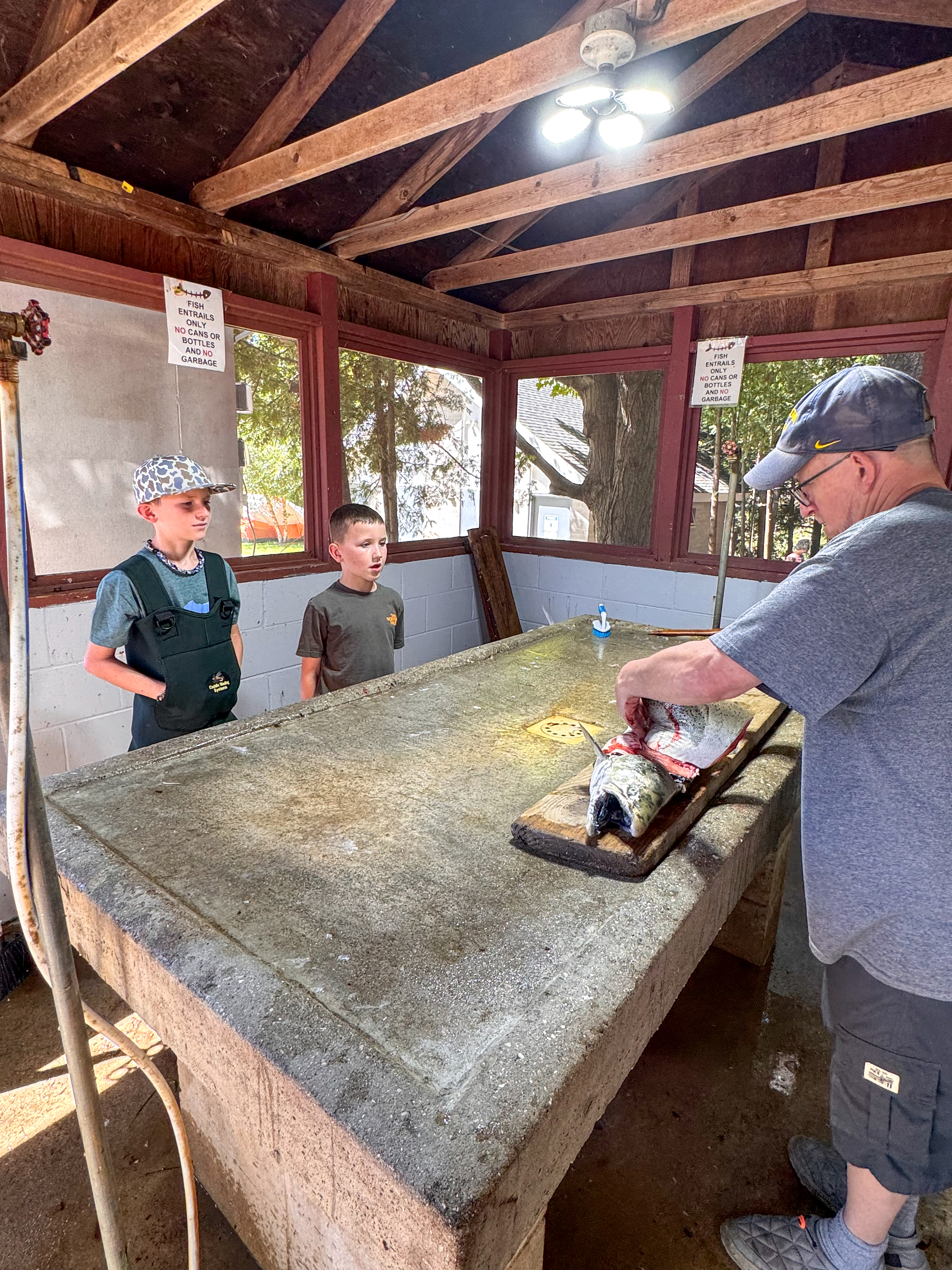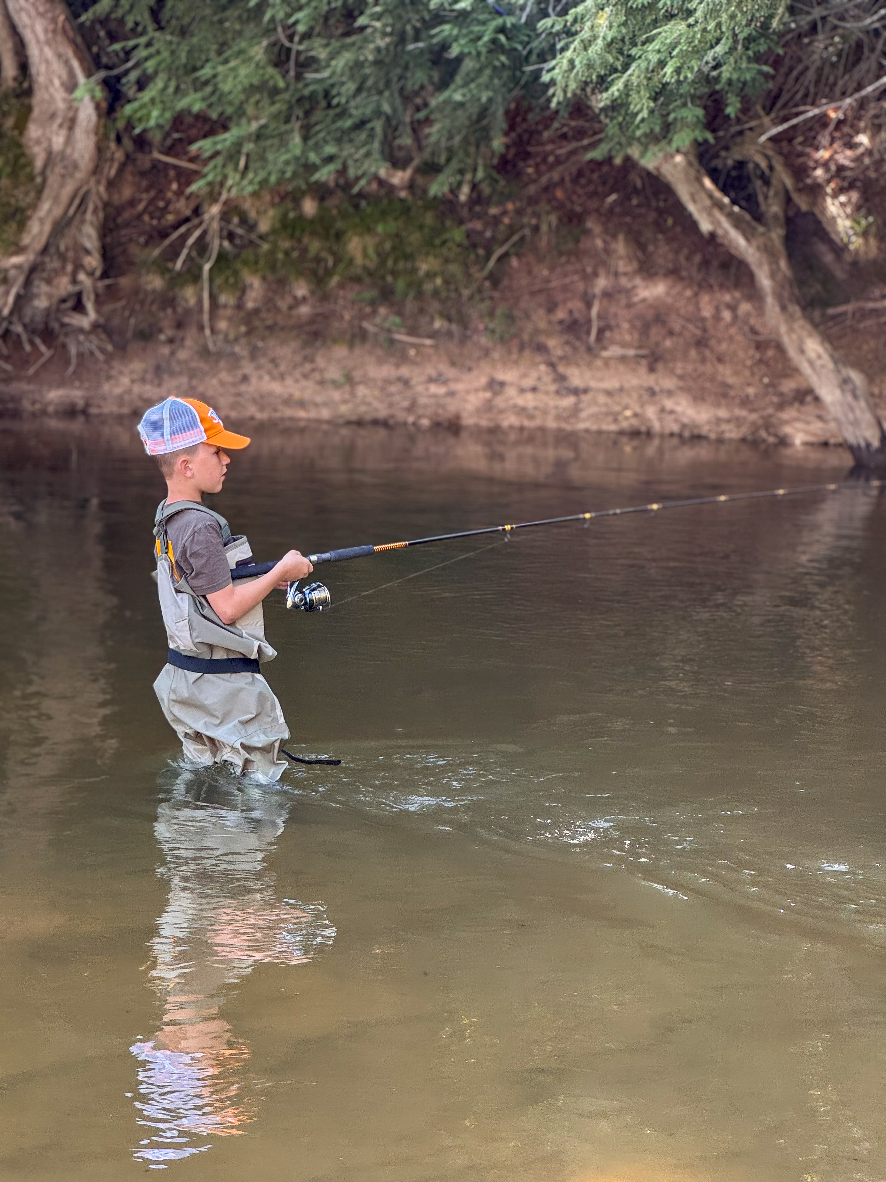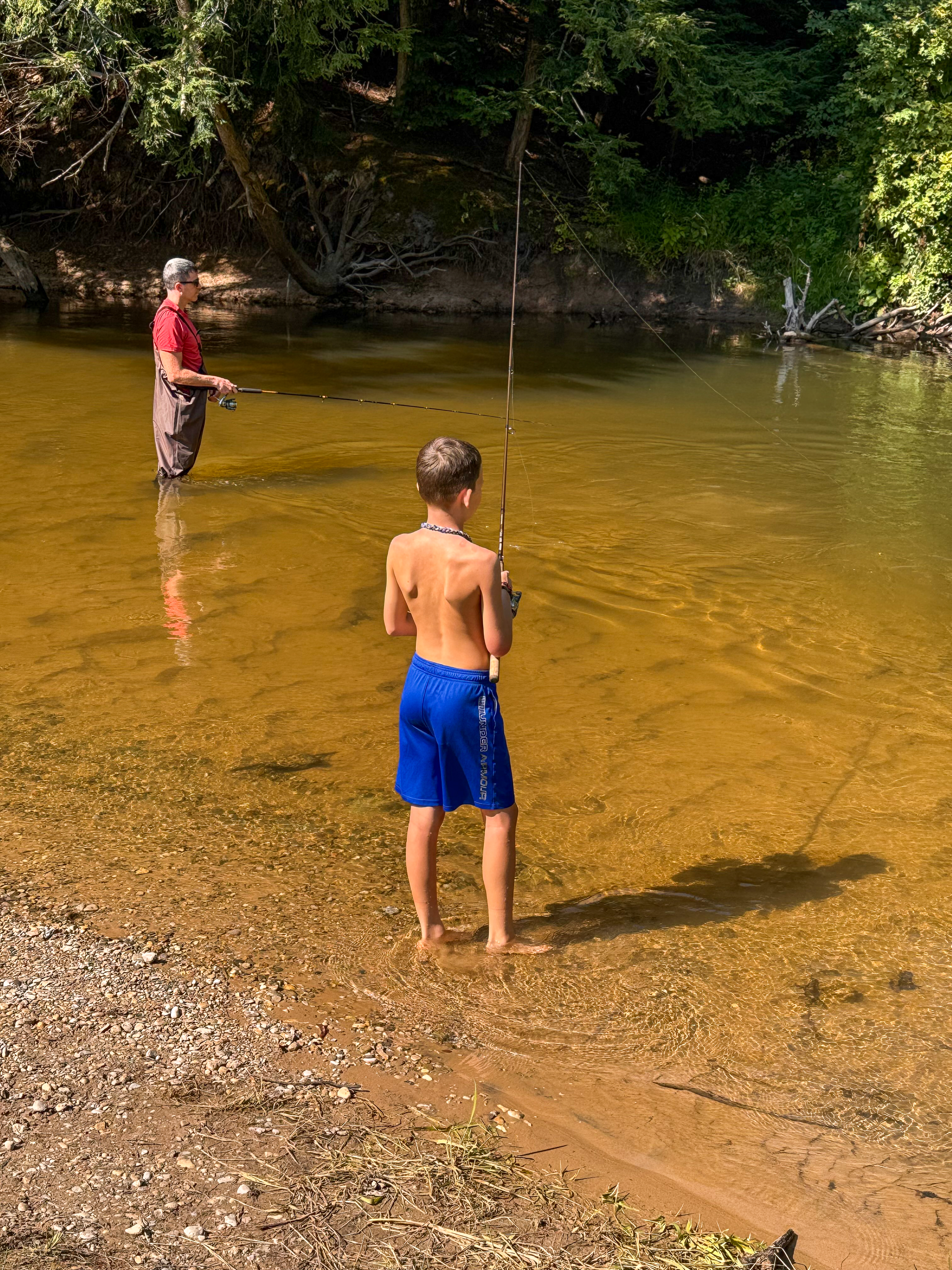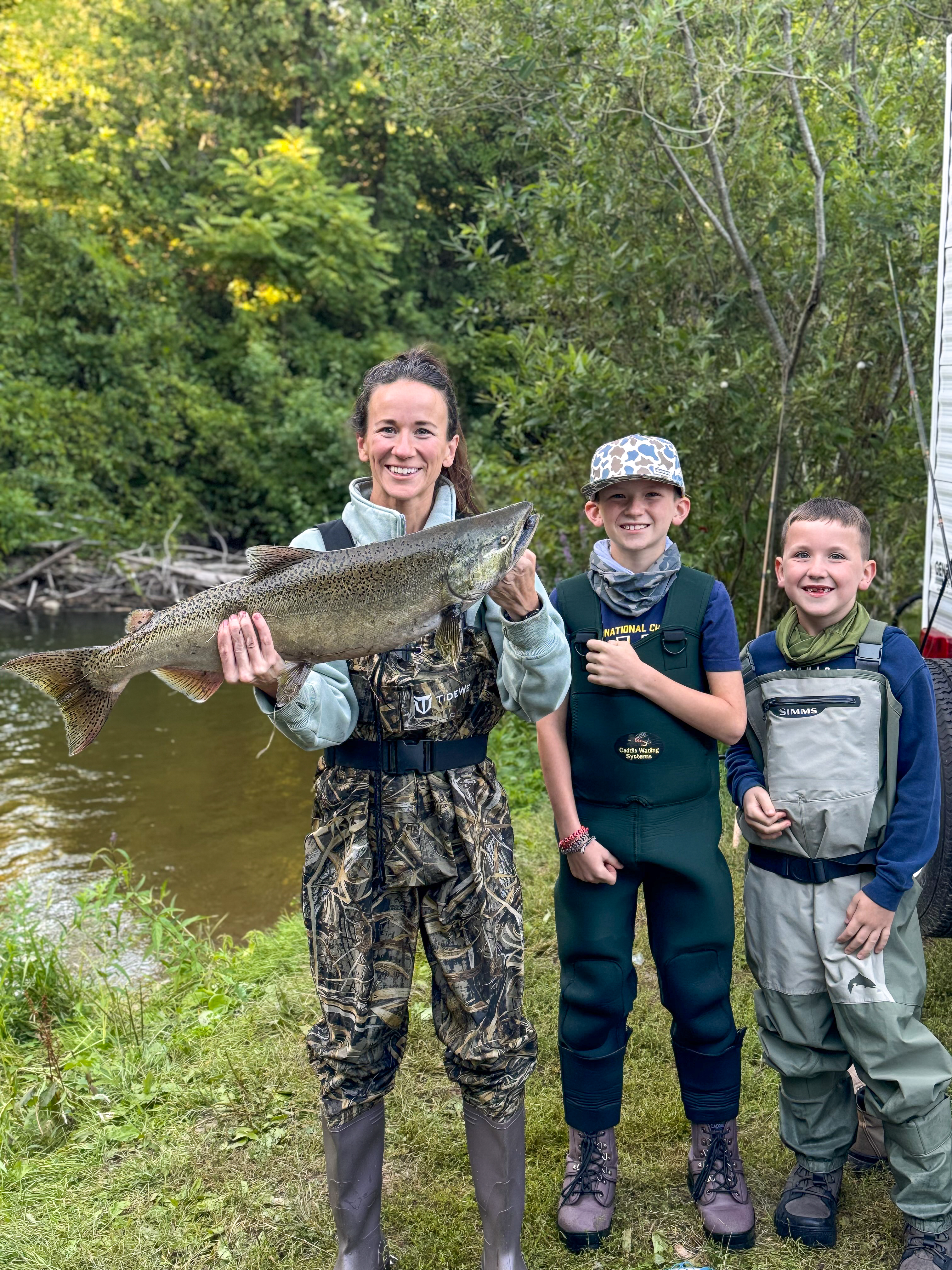 Last year, we didn’t have much luck with the salmon, but this year was a different story. Ideally, we’d come a bit later in September when the run is stronger, but the school schedule makes that tricky. Thankfully, the weather was on our side this time and it sent some salmon running!