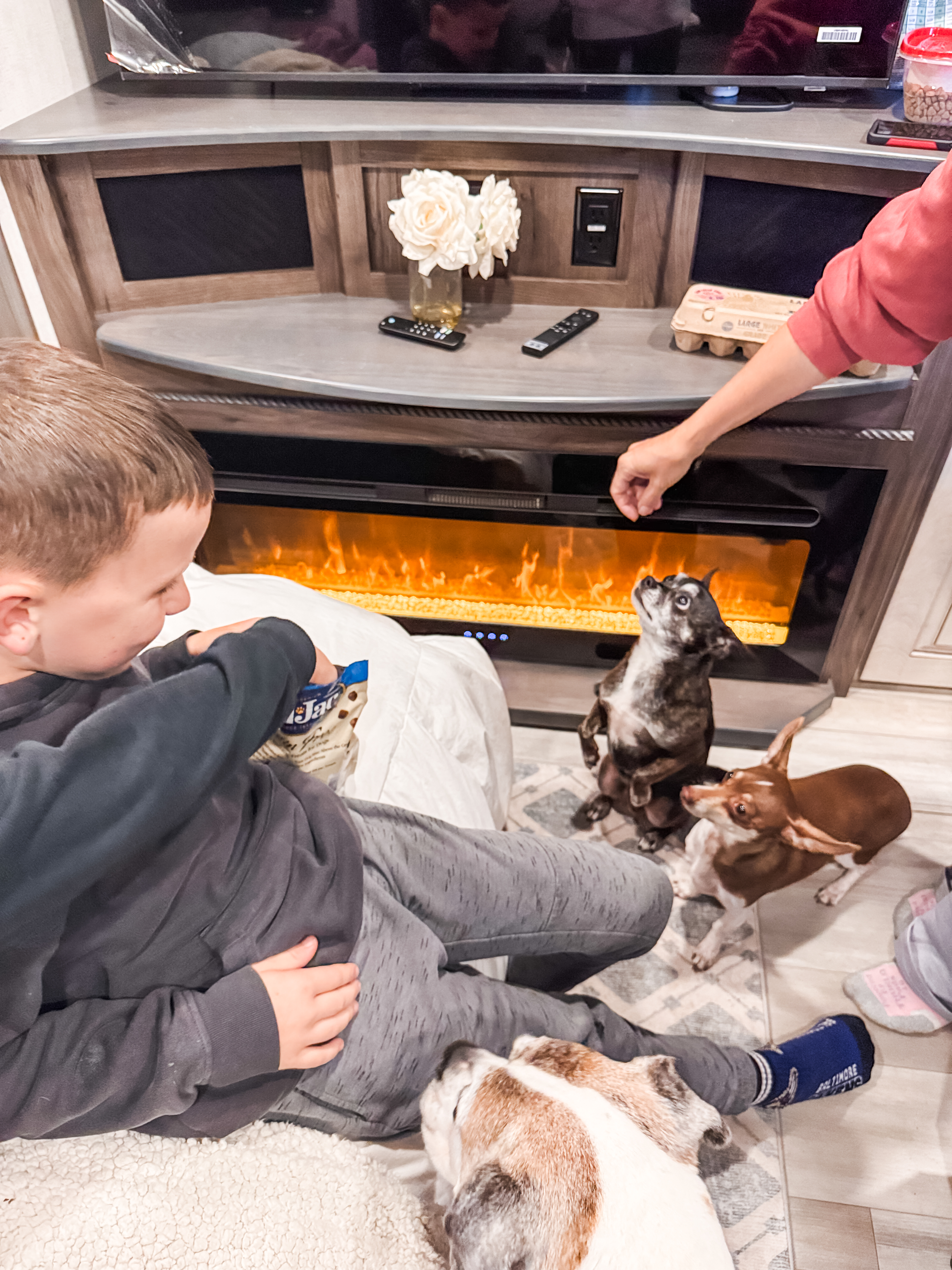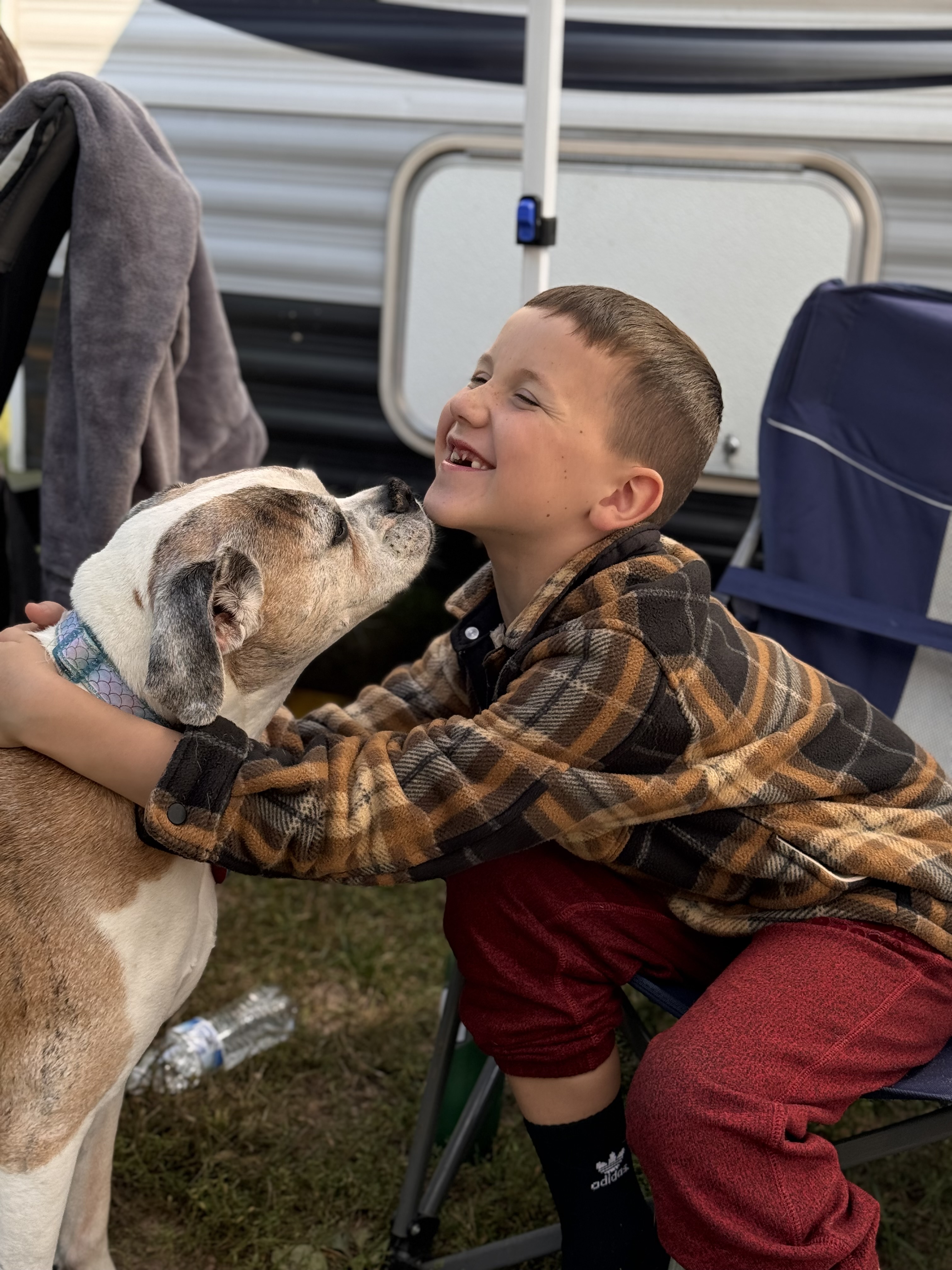 On our final day we started off the way we always did, with coffee of course! and breakfast in Aunt Theresa and Uncle Matt’s McMansion of an RV. Adrien really loves animals and was so happy to be playing with the dogs!